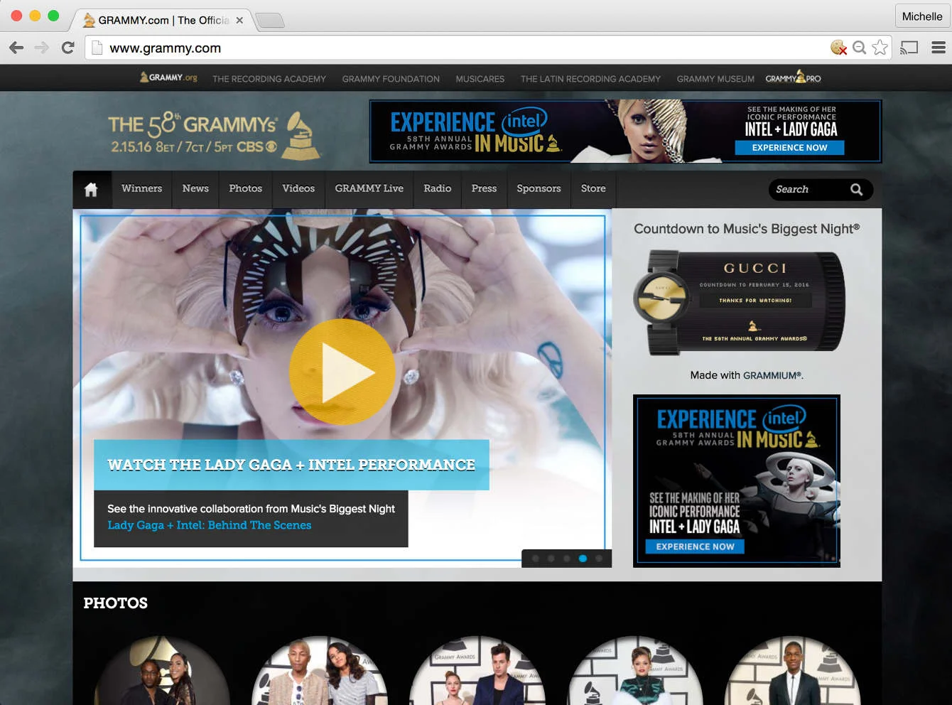 Our team brought together Intel and Lady Gaga to deliver an unprecedented experience at the 2015 Grammys. It was the first time a brand was integrated onto the Grammy stage. The partnership was announced at CES with a 50-second video which led to an integrated campaign across social, digital, PR, and TV– including a 90-second spot driving to a seven-minute digital film. The tribute reached over 83 million social impressions, made over 10 billion media impressions globally, and earned the top social share of voice amongst brands. I came up with the concept, wrote social and digital copy, and co-wrote scripts with Gaga herself.